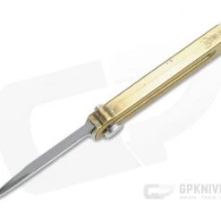 Inspired by the classic Barlow slip joint, the D Rocket Design Barlox blends a traditional blade shape with the innovative manual out-the-front action of his KatanaX. The blade slides on rails and extends from the front of the handle similar to a standard utility knife. There are no springs involved, just the mechanical movement of the button making this sub-2 inch blade a fully California legal option as well. This version comes with a black PVD coated M390 blade and brown G10 inlaid aluminum bronze handle.