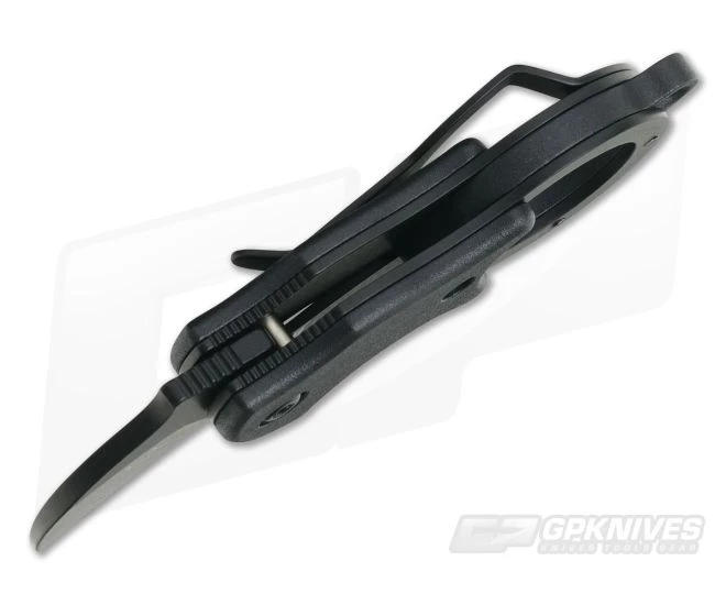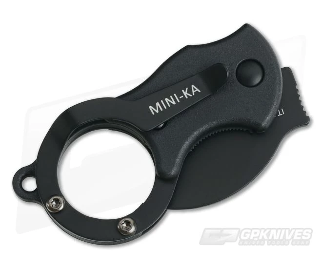 Blade:Â The Black coated hawkbill Karambit blade is made from tough, corrosion resistant stainless steel blade which opens smoothly via the raised ramp on the spine. The shallow hollow grind provides good slicing performance giving the Mini-Ka great performance for its size.