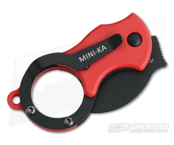 Blade:Â The Black coated hawkbill Karambit blade is made from tough, corrosion resistant stainless steel blade which opens smoothly via the raised ramp on the spine. The shallow hollow grind provides good slicing performance giving the Mini-Ka great performance for its size.