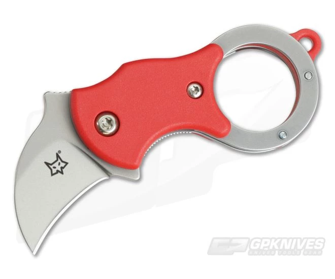 The Fox Knives Mini-Ka is a simple little key ring Karambit that offers a solid cutting tool that weighs about as much as three keys! The compact hawkbill blade is perfect for box opening and other daily tasks. This version comes with a sandblasted blade and red FRN handles.