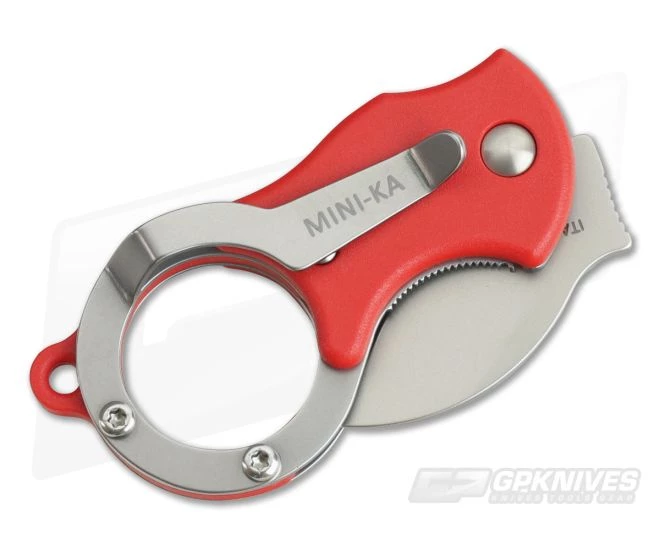 Blade:Â The hawkbill Karambit blade is made from tough, corrosion resistant stainless steel blade which opens smoothly via the raised ramp on the spine. The shallow hollow grind provides good slicing performance giving the Mini-Ka great performance for its size.