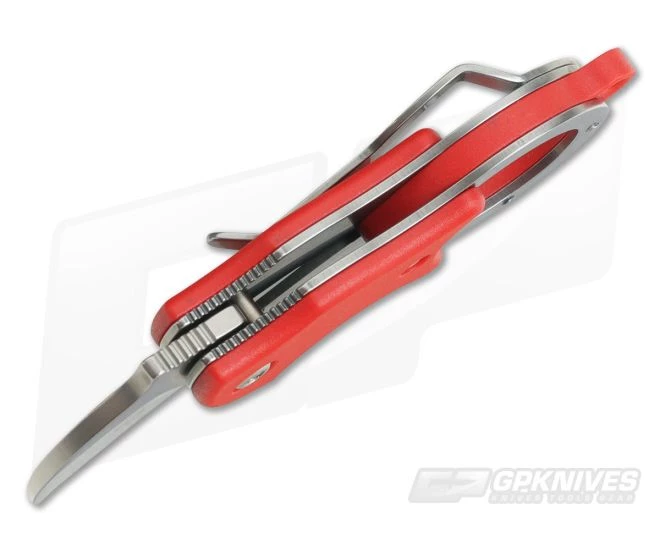 Handle:Â Simple, robust construction is created with stainless steel liners which support Red FRN handle scales. The steel liner for the integral lock as well as the pocket clip and karambit ring while the FRN forms a small ring for key ring attachment.