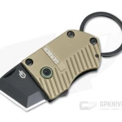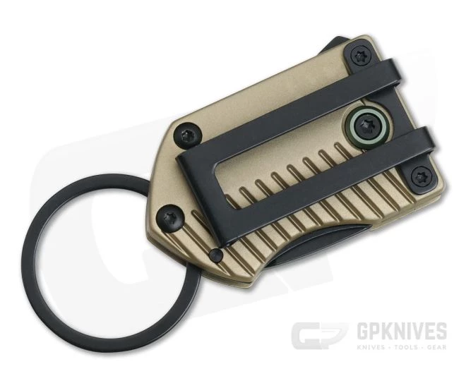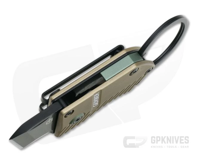 The Gerber Key Note is a multi-purpose key chain cutting tool that packs a surprising amount of utility into a compact and easy to carry package. The blade is can be deployed with a starter tab and secured open with the nail nick or opened with two hands like a traditional folder. The beefy, chisel-like blade offers both a scraping and a cutting edge. The Key Note can be carried in multiple ways: on the belt, in pocket, or on a keychain. This version comes with a black blade, coyote brown handle and green pivot collar and backspacer.