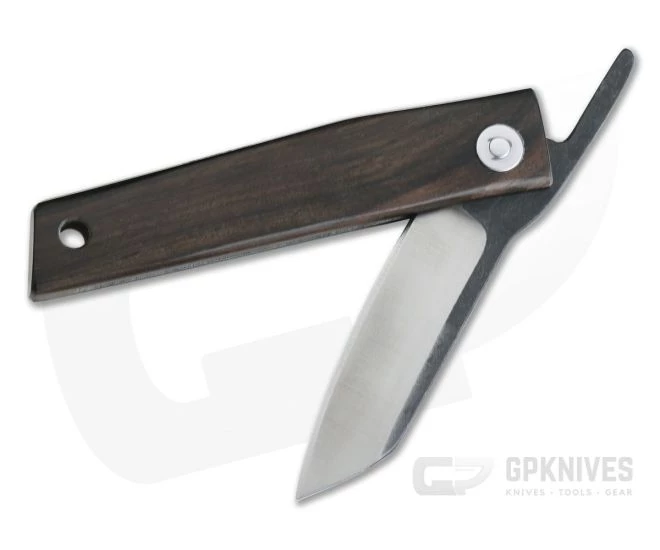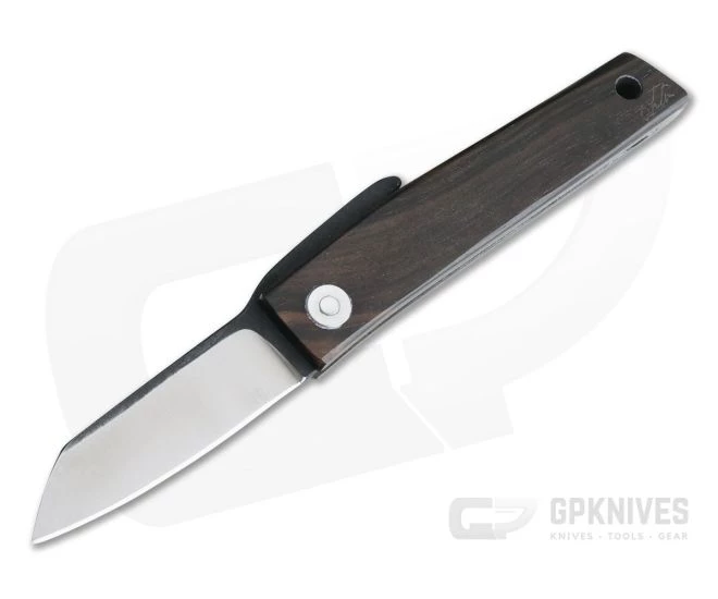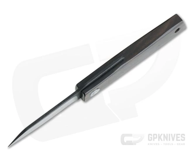 The OFF FK5 mini Friction Folder from Ohta Knives features true Japanese craftsmanship with some of the finest materials on the planet. Mr. Hiroaki Ohta combines pleasing aesthetics with proper functionality in a way seldom found in the realm of friction folding knives. This version comes with a satin finished D2 tool steel blade and Ebony wood handle.