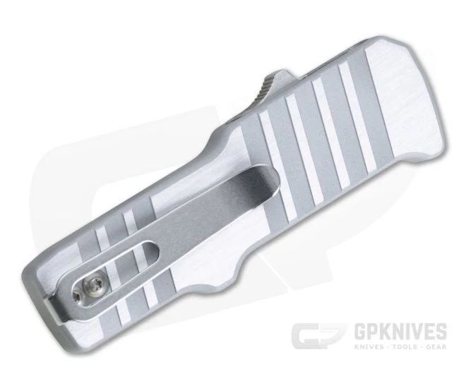 Handle:Â Smooth, satin brushed aluminum with blasted grooves delivers a classy look and traction in hand with an index guard and prominent peak on the handle helping to lock the knife in a solid three-finger grip. The top slide delivers fast and reliable double action operation. Construction is completed with satin Torx hardware on the body and satin on the clip.