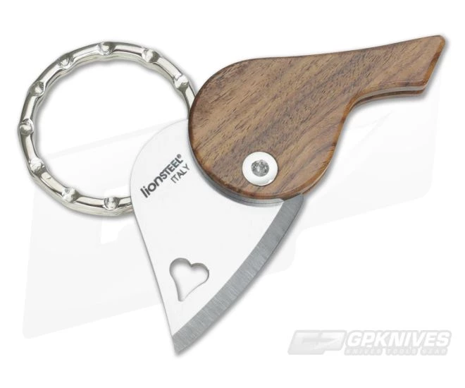 The LionSteel LionBeat Santos is the perfect accessory for the knife admirer. Â Versatile, the LionBeat can be used as a Key Chain, Pendant or Zipper Pull. Â The small friction folder features a chisel ground AISI 440 stainless steel blade operating on a single torx pivot. Â Santos wood handle houses the blade and when in the closed position, the LionBeat forms an attractive heart silhouette accented by a heart shaped cutout in the blade. Â Includes a key ring and can be easily transitioned to a pendant. Â Brand new directly from LionSteel, Italy.