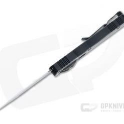 The Dirac takes the contours of the Halo, the size of the UTX-85 (just a bit smaller) and a top slide design and blends them together for a fantastic new everyday carry automatic from Microtech Knives. The double edge and top slide combination also make this Dirac fully ambidextrous, perfect for right or left-handed users. This Signature Series all black “Shadow” version includes a black DLC coated blade, matching hardware and clip and smooth black handle.