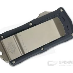 Handle:Â Smooth, Black coated 6061-T6 aluminum has rounded edges with texturing holds creating not only a comfortable feel in-hand but a smooth transition in and out of your pocket. The bonus widened “money” pocket clip adds a bit of gentleman to this OTF automatic. Ergonomic and contoured, the handle’s construction is completed with Microtech’s proprietary Bronze anodized hardware, looped hole end knocker and clip with individual serial number/date of production.