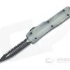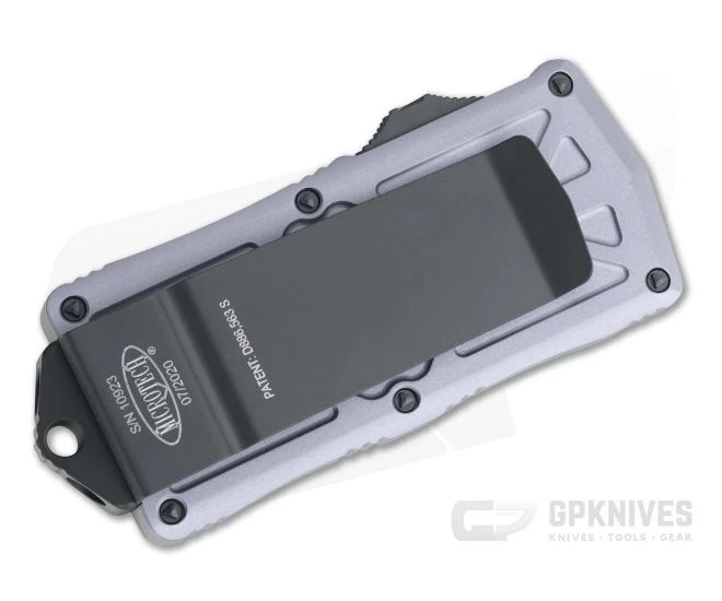 Handle:Â Smooth, gray anodized 6061-T6 aluminum has rounded edges with texturing holds creating not only a comfortable feel in-hand but a smooth transition in and out of your pocket. The bonus widened “money” pocket clip adds a bit of gentleman to this OTF automatic. Ergonomic and contoured, the handle’s construction is completed with Microtech’s proprietary hardware, looped hole end knocker and clip with individual serial number/date of production.