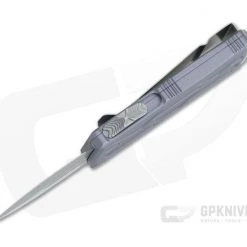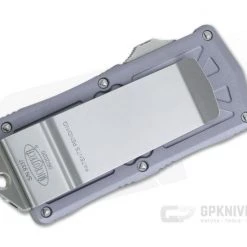 Handle:Â Smooth, Gray coated 6061-T6 aluminum has rounded edges with texturing holds creating not only a comfortable feel in-hand but a smooth transition in and out of your pocket. The bonus widened “money” pocket clip adds a bit of gentleman to this OTF automatic. Ergonomic and contoured, the handle’s construction is completed with Microtech’s proprietary hardware, looped hole end knocker and clip with individual serial number/date of production.
