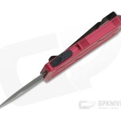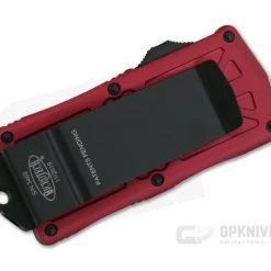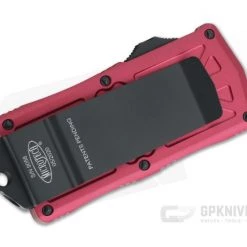 Handle:Â Smooth, red anodized 6061-T6 aluminum has rounded edges with texturing holds creating not only a comfortable feel in-hand but a smooth transition in and out of your pocket. The bonus widened “money” pocket clip adds a bit of gentleman to this OTF automatic. Ergonomic and contoured, the handle’s construction is completed with Microtech’s proprietary hardware, looped hole end knocker and clip with individual serial number/date of production.