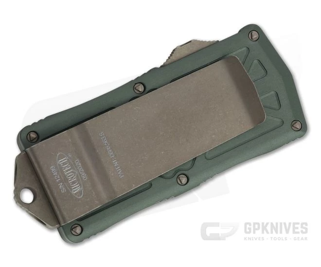 Handle:Â An OD green hard anodized 6061-T6 aluminum handle has rounded edges with strategically placed milling creating a comfortable, secure grip and a smooth transition in and out of your pocket. An extra wide “money” pocket clip makes this a prime choice for gentleman’s carry. Construction is completed with Microtech’s Bronze Apocalyptic proprietary hardware, looped hole end knocker and clip with individual serial number/date of production.