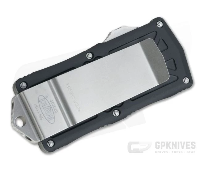 Handle:Â A black hard anodized 6061-T6 aluminum handle has rounded edges with strategically placed milling creating a comfortable, secure grip and a smooth transition in and out of your pocket. An extra wide “money” pocket clip makes this a prime choice for gentleman’s carry. Construction is completed with Microtech’s proprietary hardware, looped hole end knocker and clip with individual serial number/date of production.