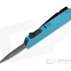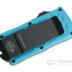 Handle:Â Smooth, Turquoise coated 6061-T6 aluminum has rounded edges with texturing holds creating not only a comfortable feel in-hand but a smooth transition in and out of your pocket. The bonus widened “money” pocket clip adds a bit of gentleman to this OTF automatic. Ergonomic and contoured, the handle’s construction is completed with Microtech’s proprietary hardware, looped hole end knocker and clip with individual serial number/date of production.