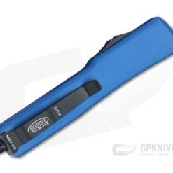 Handle:Â Smooth, Blue coated 6061-T6 aluminum has improved rounded edges creating not only a comfortable feel in-hand but a smooth transition in and out of your pocket. As the UTX-70 is much smaller and thinner they have left off the jimping for a cleaner look. This is a gentleman’s OTF automatic. The contoured handle design is easy on the hands and eyes. The handle’s construction is completed with Microtech’s black proprietary hardware, glass breaker end and blasted pocket clip with individual serial number/date of production.Â