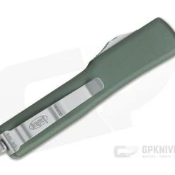 Handle:Â Smooth, OD Green hard anodized 6061-T6 aluminum handles have improved rounded edges creating not only a comfortable feel in-hand but a smooth transition in and out of your pocket. As the UTX-70 is much smaller and thinner they have left off the jimping for a cleaner look. This is a gentleman’s OTF automatic. The contoured handle design is easy on the hands and eyes. The handle’s construction is completed with Microtech’s proprietary hardware, glass breaker end and blasted pocket clip with individual serial number/date of production.