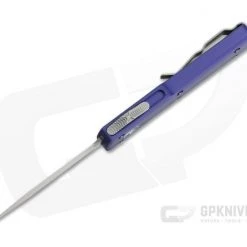 The UTX-70 (15% smaller than the UTX-85) is a dual action mini out the front automatic knife from Microtech that’s one of the most friendly for everyday carry. The diminutive size is perfect for watch pocket or even key ring carry. This version has purple contoured handles and a plain satin finished, Double Edge CTS-204P blade.