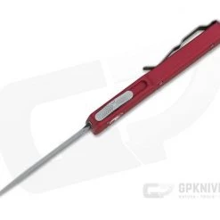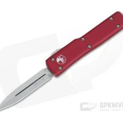 The UTX-70 (15% smaller than the UTX-85) is a dual action mini out the front automatic knife from Microtech that’s one of the most friendly for everyday carry. The diminutive size is perfect for watch pocket or even key ring carry. This version has Red contoured handles and a plain Stonewashed finished, Double Edge CTS-204p blade.