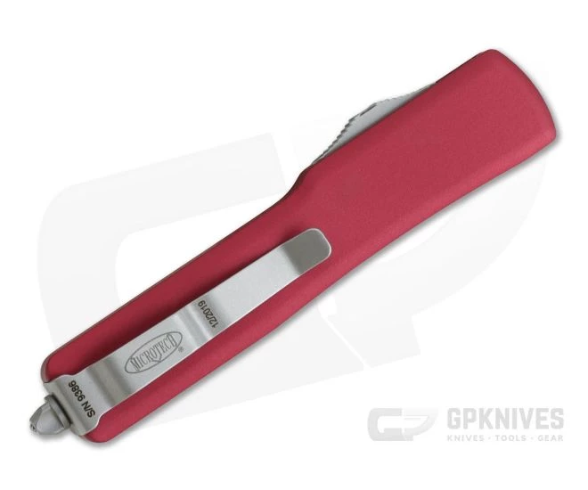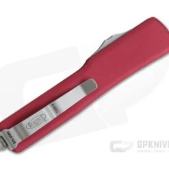 Handle:Â Smooth, Red coated 6061-T6 aluminum has improved rounded edges creating not only a comfortable feel in-hand but a smooth transition in and out of your pocket. As the UTX-70 is much smaller and thinner they have left off the jimping for a cleaner look. This is a gentleman’s OTF automatic. The contoured handle design is easy on the hands and eyes. The handle’s construction is completed with Microtech’s proprietary hardware, glass breaker end and blasted pocket clip with individual serial number/date of production.