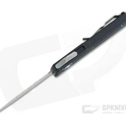 The UTX-70 (15% smaller than the UTX-85) is a dual action mini out the front automatic knife from Microtech that’s one of the most friendly for everyday carry. The diminutive size is perfect for watch pocket or even key ring carry. This version has Black contoured handles and a satin finished, Double Edge CTS-204P blade with one plain edge and one fully serrated edge.