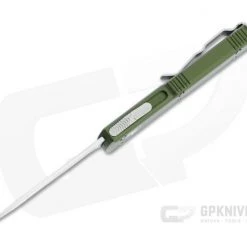 The Microtech UTX-70 (30% smaller than the standard Ultratech) is one of the most friendly everyday carry, double action out-the-front automatic knives around. The diminutive size is perfect for watch pocket carry while the classy look makes it a must-have for dress carry. This version has an OD Green aluminum handles and a stonewashed M390 Tanto blade.