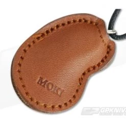 The Moki Colon is a Mini Pendant knife with a polished, plain edge AUS-8 stainless steel blade and polished Linen Micarta handles. A small stainless steel split ring with leather necklace lanyard and mini leather slip case is installed for discreet every day carry and use.