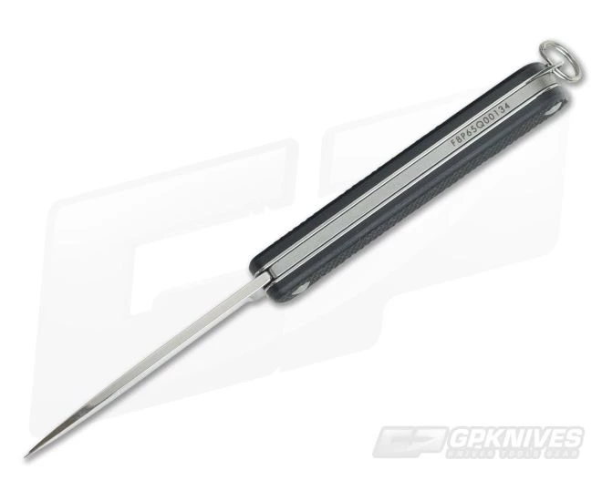 Handle:Â Simple steel liners support Skidproof Textured black G10 for a secure grip. One of the liners extends and functions as the attachment point for the steel split ring for keychain attachment. A full stainless steel back spring offers protection for the blade edge in the closed position.