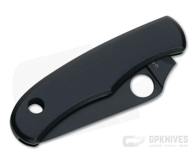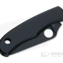 Handle:Â The precision machined stainless steel handle slabs and back spring are seamlessly pinned together for a simple, robust and easy to maintain construction. The slip joint design offers secure, non-locking operation much like a traditional folder. A generous lanyard hole allows for neck or keychain carry. The handle has a matching black oxide finish with engraved Spyderco ‘bug’ logo.