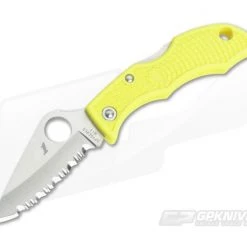 Blade:Â Delivered in a modified clip point profile, the hollow ground, satin finished H1 stainless steel delivers powerful slicing performance with a fully serrated SpyderEdge. SpyderEdge serrations increase the cutting edge surface by up to 24% and make short work of tough, fibrous materials while still being capable of clean slicing with proper technique. A fine tip is great for piercing and detail work. Jimping on the thumb ramp offers enhances traction and control while Spyderco’s ambidextrous Round Hole opener makes for smooth, easy, one hand operation. The small size makes this a perfect choice for fine work or for carry in restrictive environments.