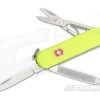 Victorinox Classic SD Swiss Army Knife with Swiss stainless steel components with cobalt blue celluloid handle. Includes stainless steel lanyard ring.